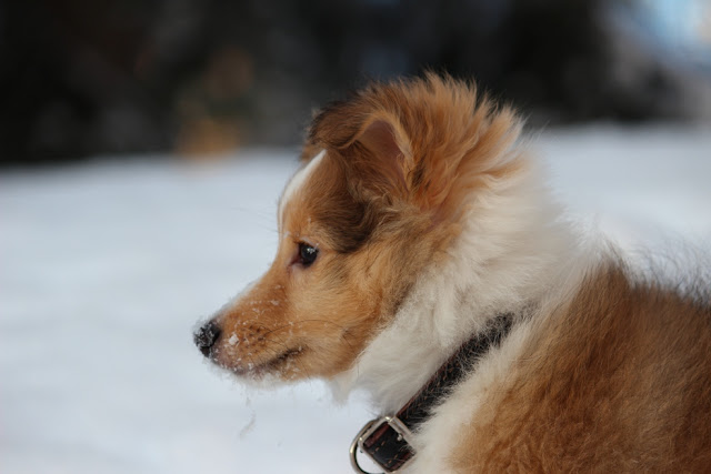 Hiukka alkanut tympiä päivät, jolloin lähdet ulos tarkoituksena ottaa kuva tai 2 ja mitä jää käteen? Suht pimeitä ja sinisen sävyisiä otoksia, joista ei voi edes ihan täysin sanoa, onko ne tarkkoja vai ei. Tämän päivän vapaapäivän kunniaksi aurinko esitteli itseään pilvettömältä taivaalta. Vaikka pakkasta oli reipas -12 astetta, uhmattiin Islan kanssa kylmää ilmaa ilman villapaitaa ja napattiin kamerakin mukaan. Tarkoituksena oli myös ottaa kuvamateriaalia korvien kehityksestä. Ja katohan vaan, kovasti se raskas korvakin näyttää kevenevän. :)